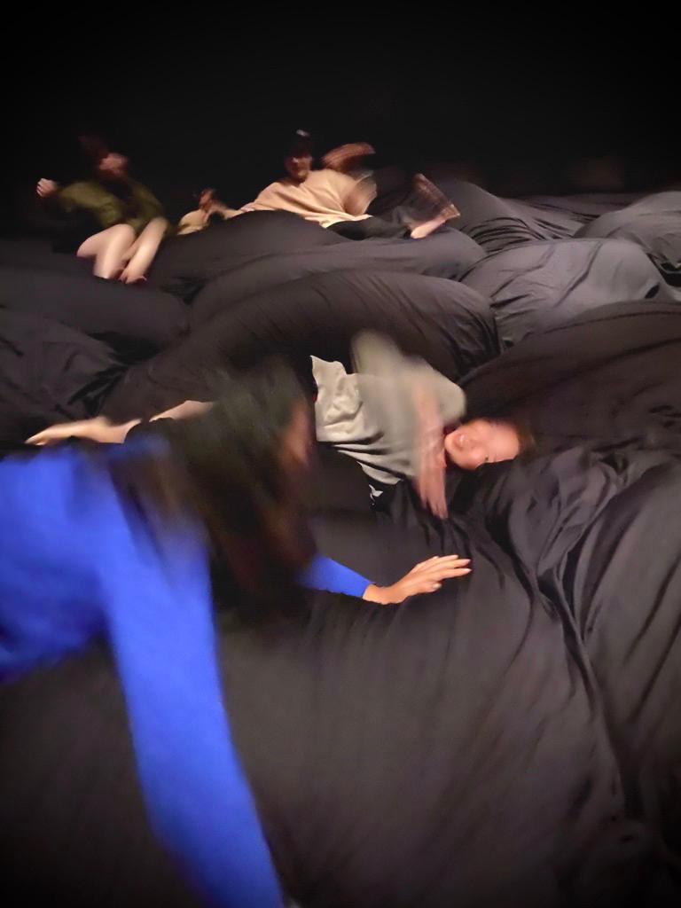 Carrying on with the idea of light and how each point/dot/sphere holds light and color, is a room filled with large free floating balls that move and can be moved according to the movement of each visitor. It was another room reminiscent of a “fun-house”. Two things came to mind: first the feeling that you were shrunken in size (a la “Honey I Shrunk the Kids”) as large as each molecule and second a student sculpture I made during my time at UCLA. I had constructed a floating sculpture out of garage bags to resemble a still life’s shadow. The balloon I made was dependent on the movement within the room and played on the idea of how a shadow follows you. I’ve always loved the notion of installation and art that is in direct dialogue with the viewer. It touches on so many memories and feelings while also challenging concepts of what a 3-D object is.